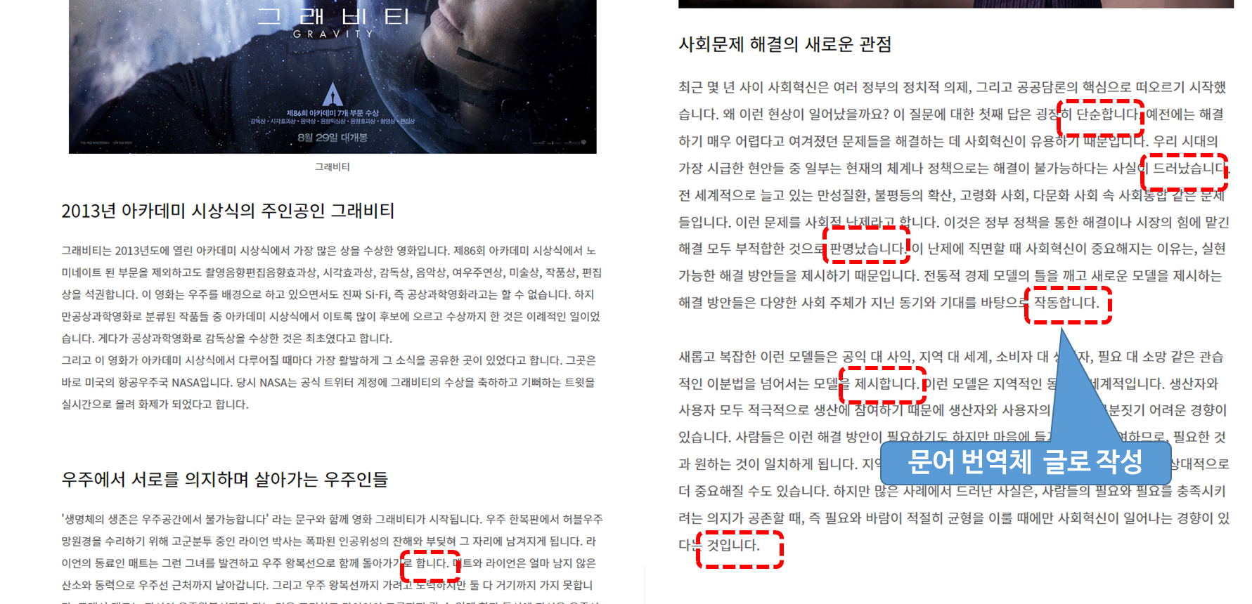 4. 문장 작성 시 신문기사, 논문, 전문서적처럼 "~했습니다. ~입니다. ~합니다. ~없다."로 문장을 마무리해야 합니다.
