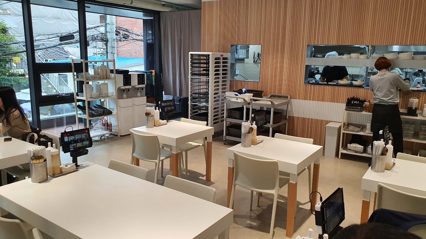 식당 내부는 테이블 간 배치가 넓어 보이네요. 2인석과 4인석으로 배치되어 있는데, 테이블이 다른 식당들에 비해 크네요. 4인석 같은 경우 일반적인 6인석 테이블보다 조금 작은 정도입니다.