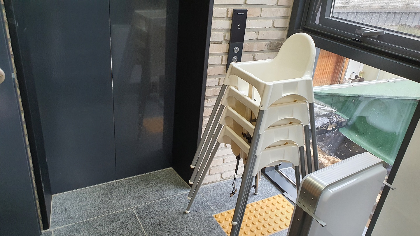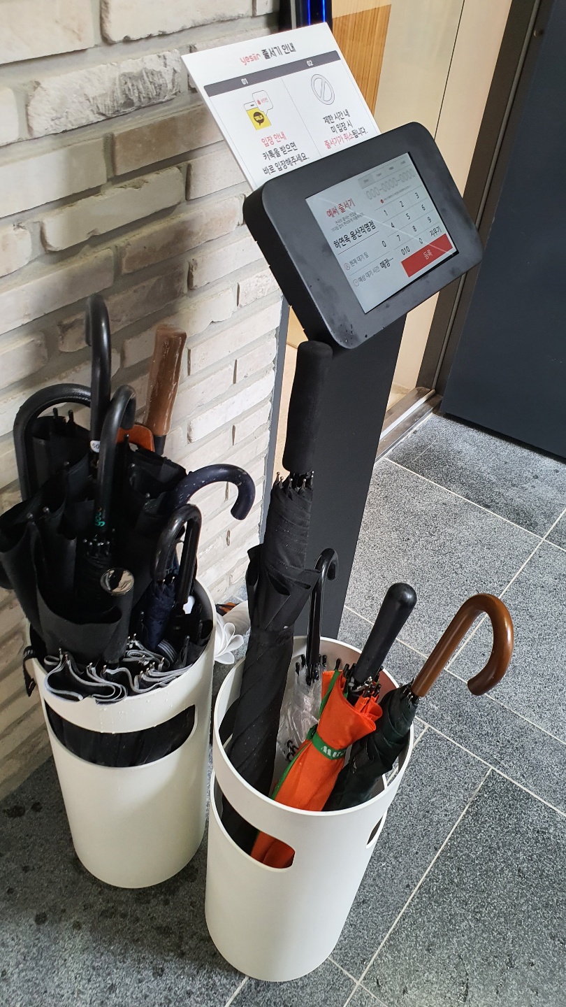 들어가는 입구에 보니 비가 와서 그런지 우산통도 준비되어 있고, 아기의자도 따로 정리되어 있네요.