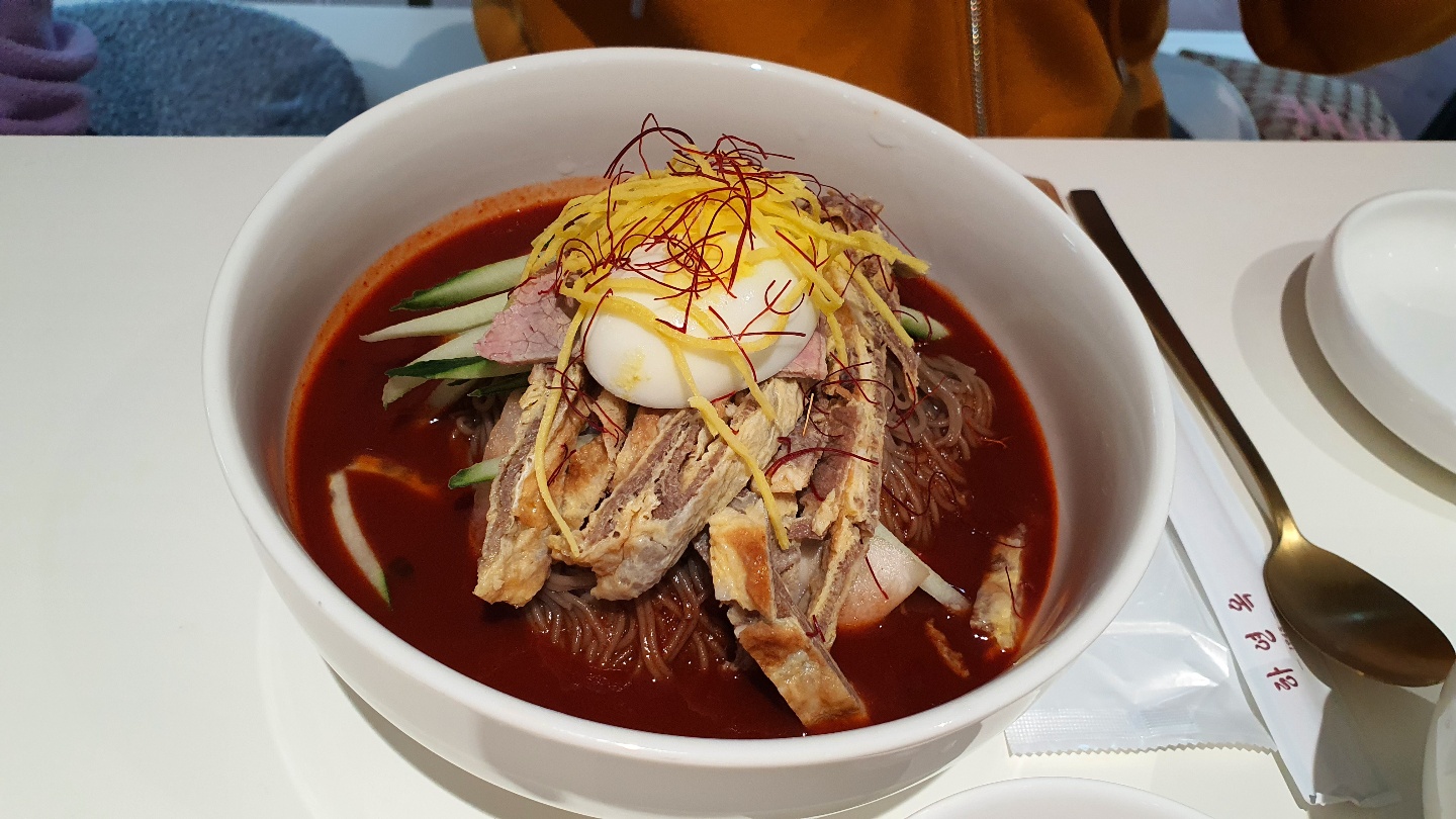 비빔냉면의 경우는 보통 함흥냉면에 비해 고추장 맛이 강합니다. 물냉면이 워낙 강렬해서 살짝 비교되는 맛이긴 한 데, 나름대로 맛있습니다.