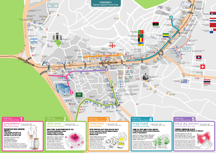 이태원관광특구연합회 홈페이지에 이태원 주변 거리의 관광안내를 자세하게 보여주는 지도가 있어서 받아봤습니다.