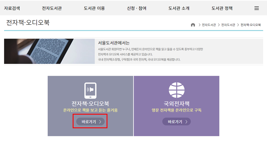 화면이 변경되면, '전자책&오디오북 바로가기'를 클릭하세요.