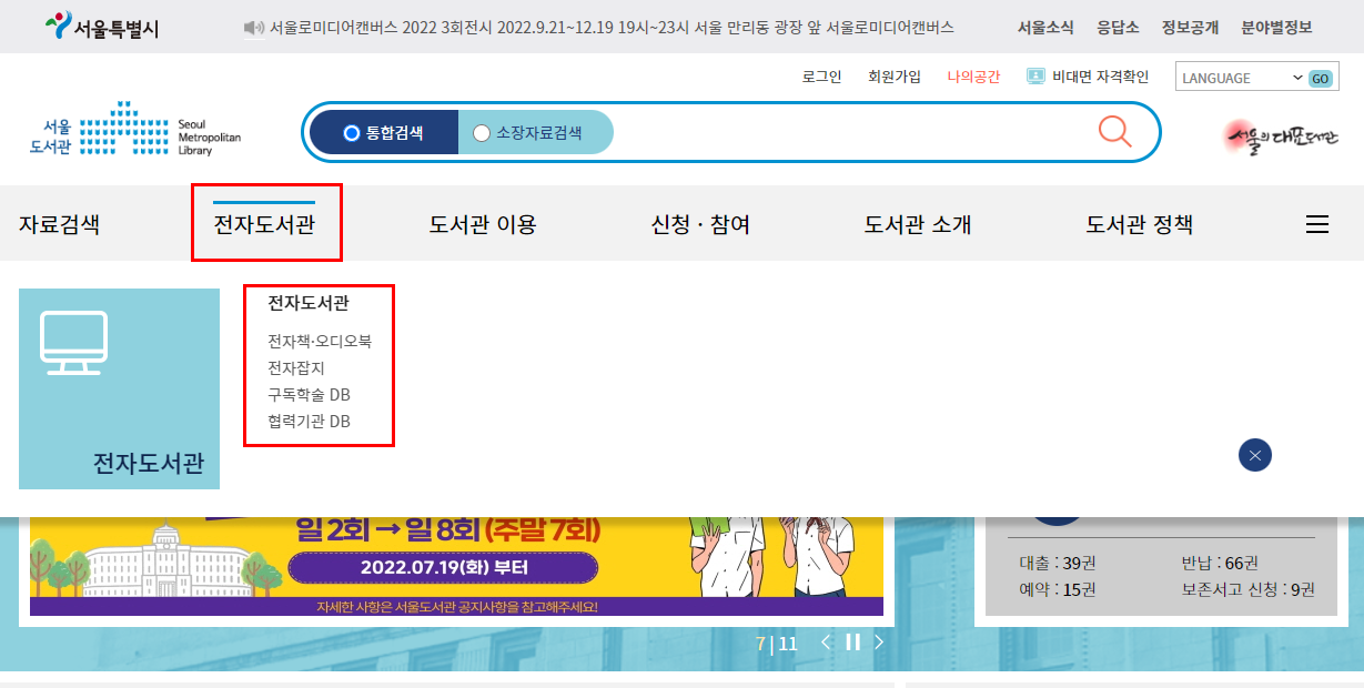 오늘은 서울시에서 제공하는 전자도서관 이용법을 소개해 드리겠습니다.
