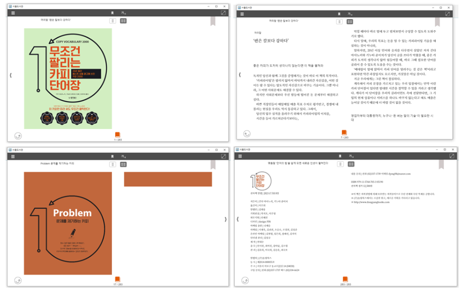 전용 뷰어를 설치한 후, 다시 책 읽기를 클릭하면 아래와 같이 책을 읽을 수 있습니다.